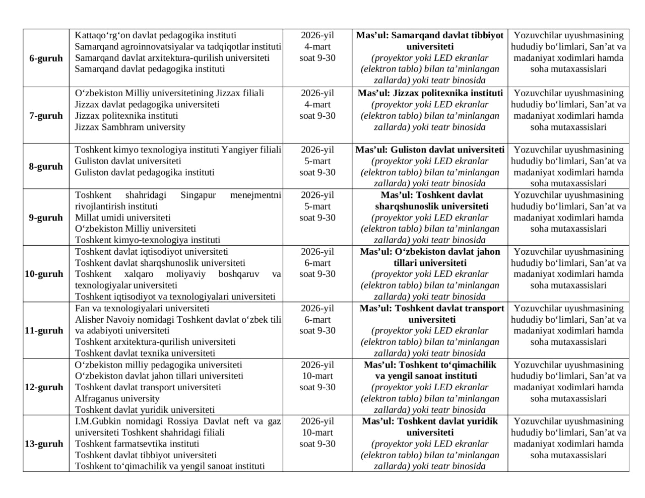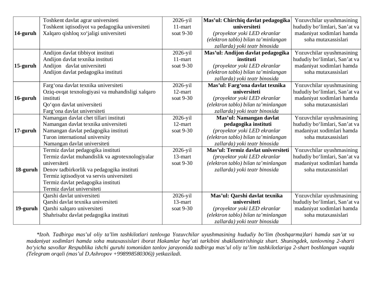 Barcha ishtirokchi jamoalarga omad, ijodiy yutuqlar va yuqori natijalar tilaymiz!