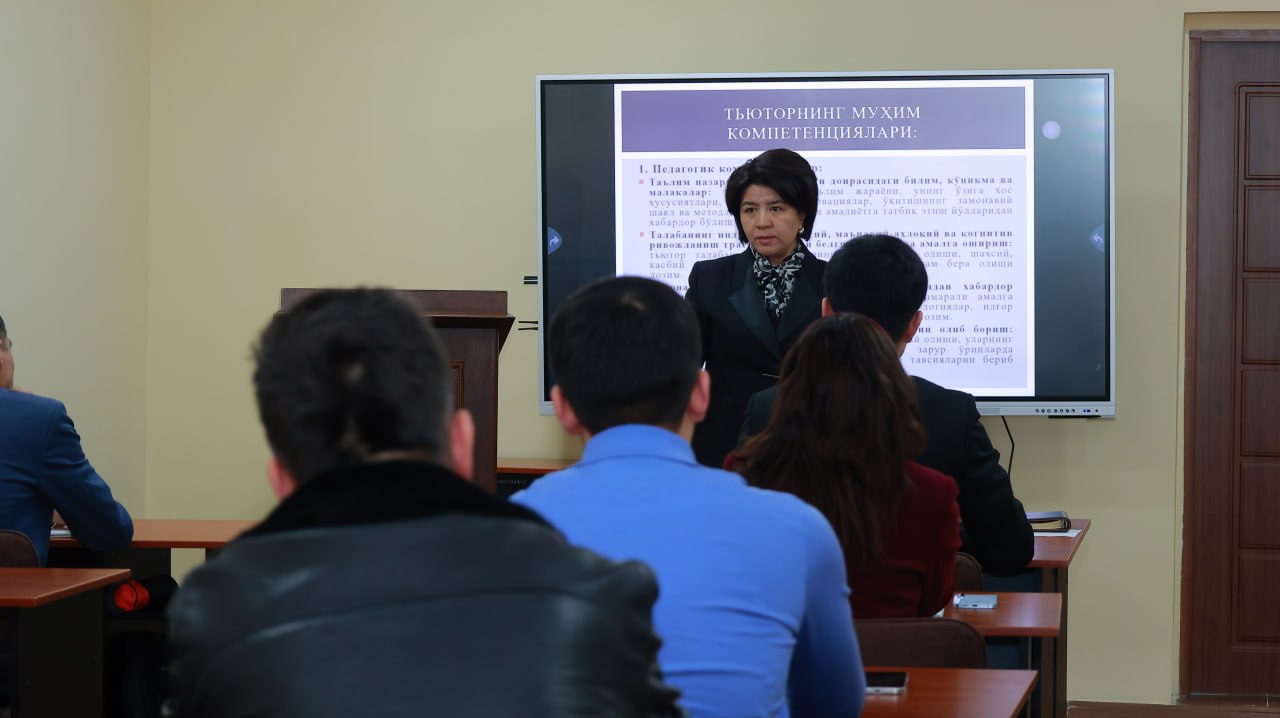 Toshkent shahridagi oliy ta’lim muassasalari tyutorlari uchun mashg‘ulotlar markazda oflayn tarzda o‘tkazilmoqda. Unda ishtirokchilar tajribali mutaxassislar tomonidan olib borilayotgan ma’ruzalar, amaliy seminarlar va treninglarda qatnashib, o‘z faoliyatida qo‘llash mumkin bo‘lgan muhim bilim va tajribalarni egallamoqdalar.