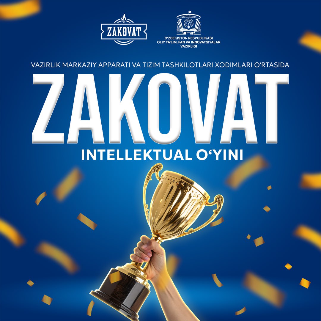 Oliy taʼlim, fan va innovatsiyalar vazirligining markaziy apparat va tasarrufidagi tizim tashkilotlari xodimlari o‘rtasida “Zakovat” intellektual o‘yini o‘tkaziladi.
