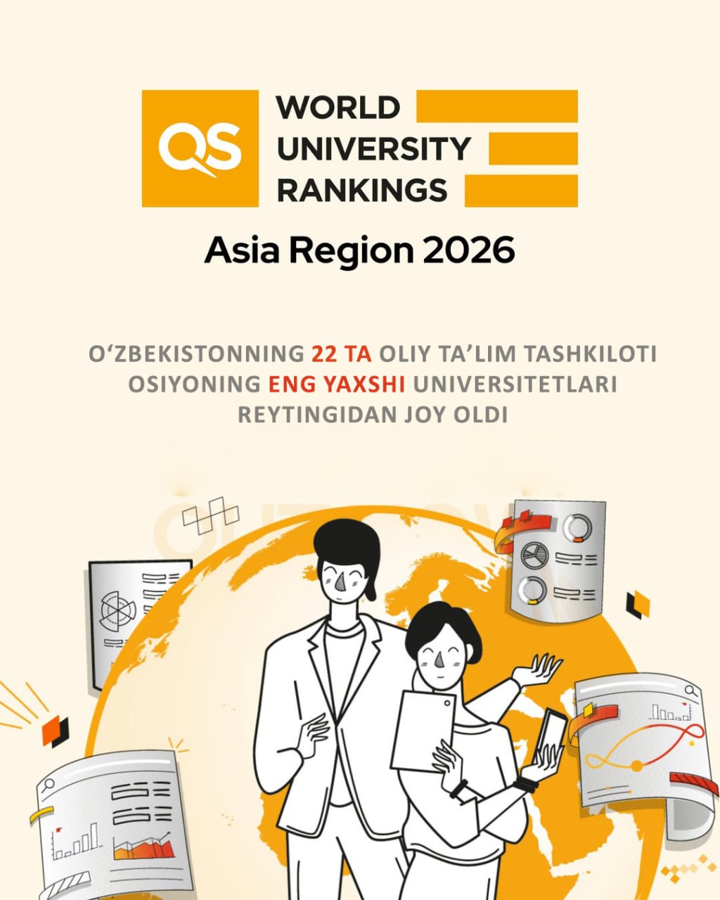 Oʻzbekistonning 22 ta oliy taʼlim tashkiloti Osiyoning eng yaxshi universitetlari reytingidan joy oldi