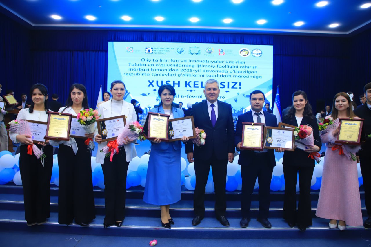 Talaba va o‘quvchilarning ijtimoiy faolligini oshirish markazi tomonidan 2025-yilda o‘tkazilgan respublika tanlovlari g‘oliblari Buxoro viloyatida tantanali ravishda taqdirlandi.